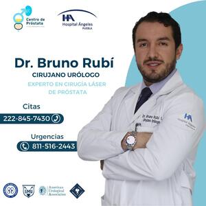 Dr. Bruno Rubí López experto en cáncer de próstata, urólogo certificado en cirugía robótica Da Vinci. Director del Centro de Próstata y Vías Urinarias en Puebla, México. Referente Nacional e Internacional en cirugía avanzada del cáncer de próstata.